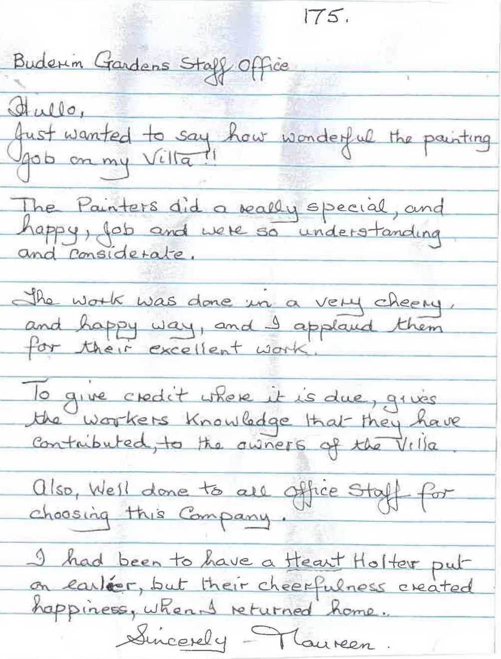 You can imagine how we felt when we received this letter from Maurine at Buderim Gardens Retirement Village, but it's what she said at the end that REALLY caught our emotions!