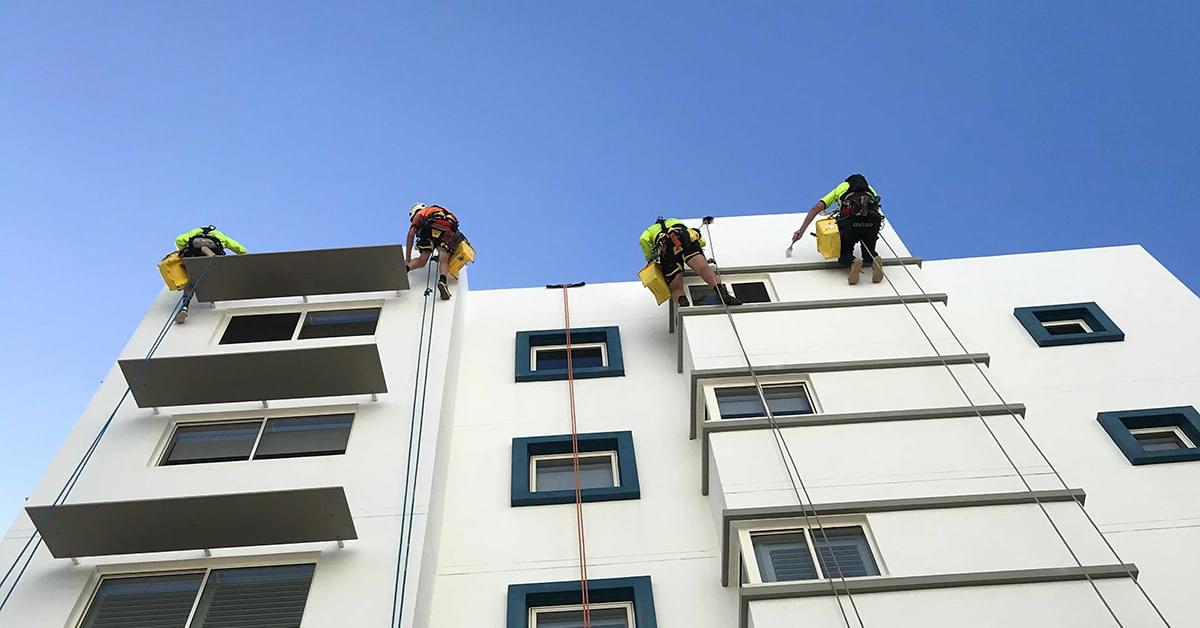 Scope: Repaint all external surfaces on the 9 storey building using qualified abseiling painters.